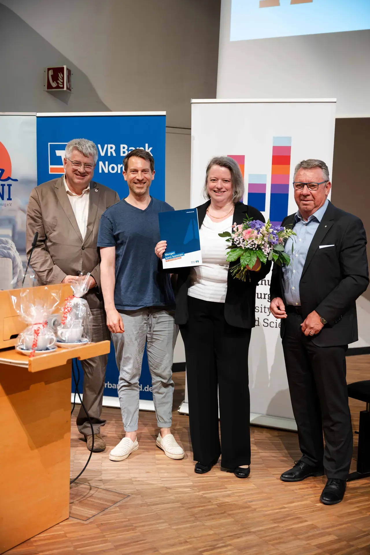 Mit dem VR Bank-Hochschulpreis honorieren wir herausragende akademische Leistungen junger Flensburger Wissenschaftlerinnen und Wissenschaftler. Ausgezeichnet werden Arbeiten, die einen relevanten Beitrag zur wirtschaftlichen, technischen und gesellschaftlichen Weiterentwicklung der Region leisten.